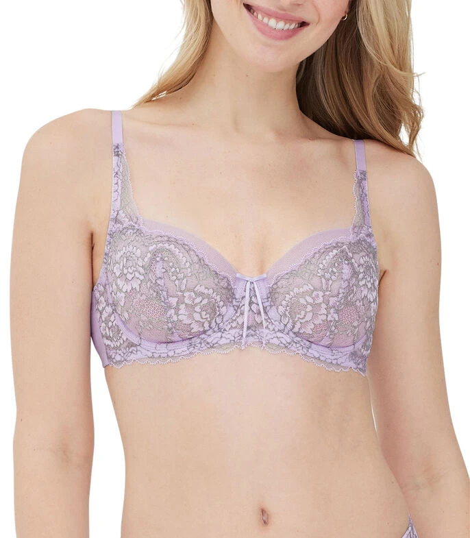 Brasier Skarlett Blue en tejido de punto, microdiseños, copa con varilla, tirantes ajustables y broche en la espalda. Siéntete naturalmente sexy con este sujetador de balconette de encaje. La forma sin forro y el escote revelador ofrecen un hermoso levantamiento que hace alarde de sus curvas.