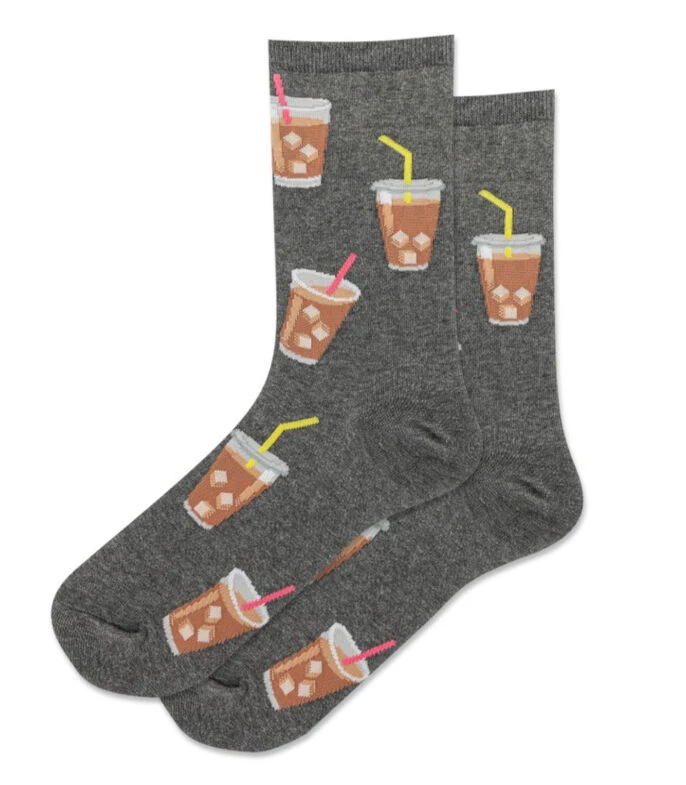 Calcetín Hot Sox en tejido de punto color gris con bordado de vaso de café helado a contraste; ¿Necesitas ese refresco mañanero o gastas demasiado de tu sueldo en la cafetería de tu barrio? En cualquier caso, estos calcetines te lo recuerdan. Cuando la cuenta bancaria no te permite tomarte una bebida fría, estos calcetines sí.