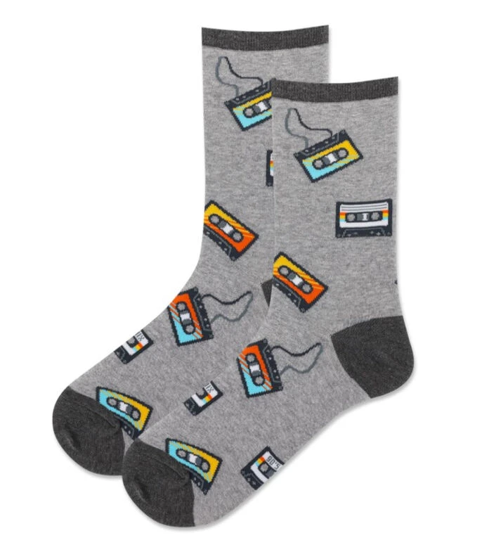 Calcetín Hot Sox en tejido de punto color gris con bordado de cassettes a contraste; Destaca con estos calcetines retro. Este par de calcetines sacara tu lado ochentero.