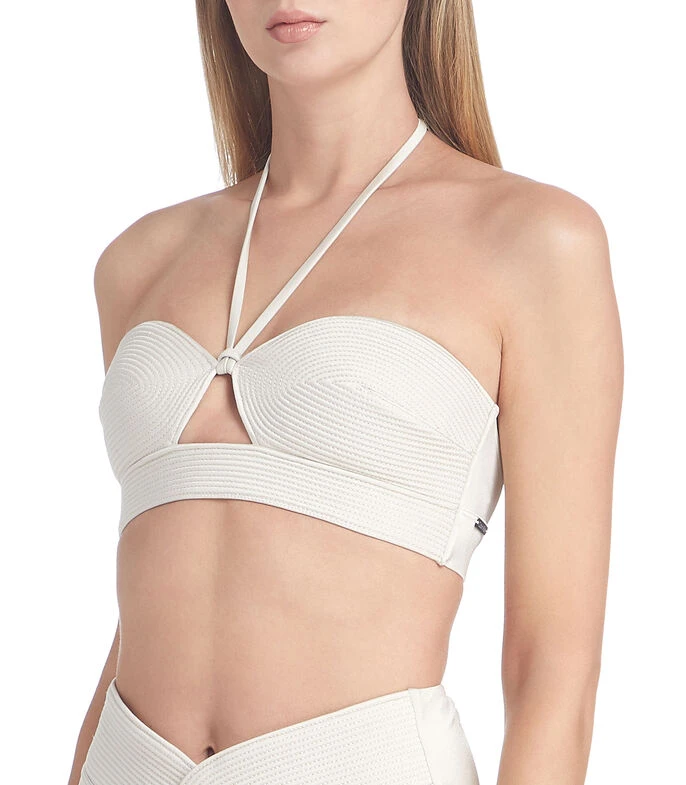 Bikini top Calvin Klein en tejido de punto diseño acanalado, sin copa, tirantes delgados, broche en espalda y detalle decorativo de la marca en lateral.