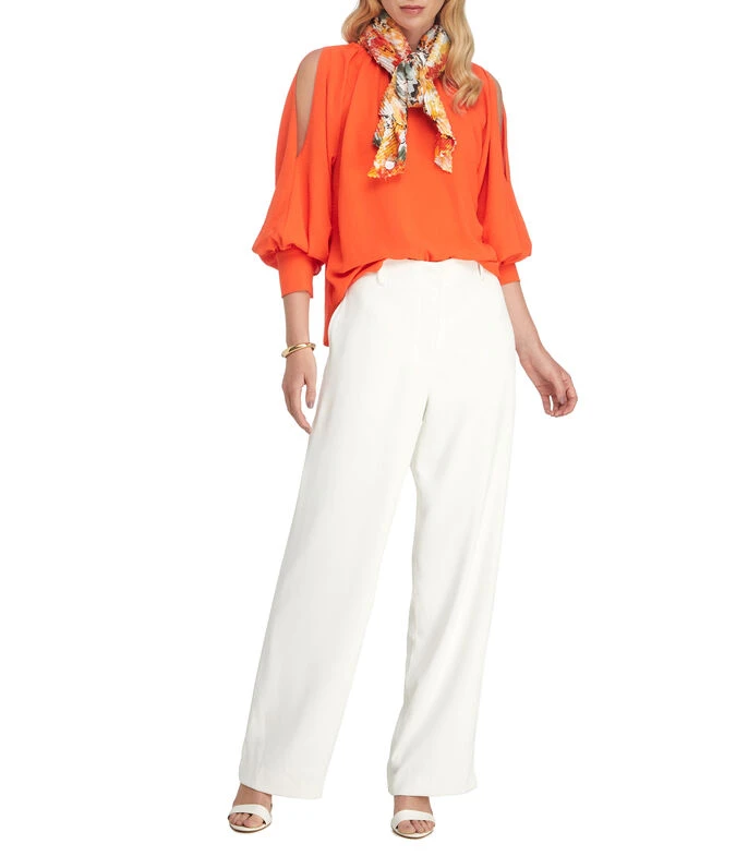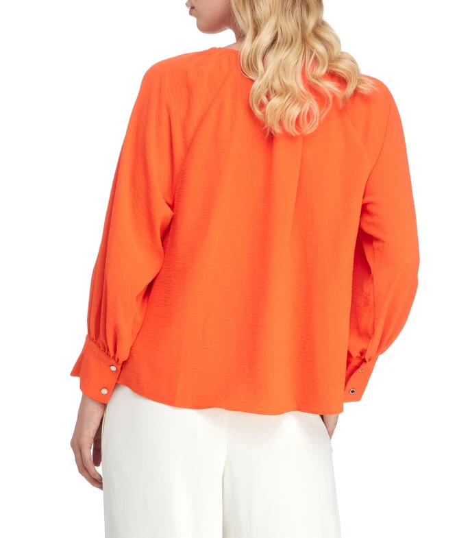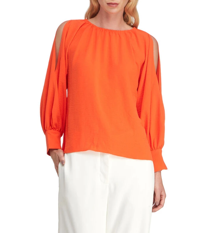 Blusa Calvin Klein de corte regular en tejido de punto, cuello redondo, manga larga con puño doble y aberturas en hombros.
