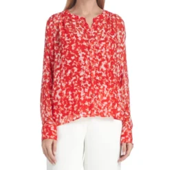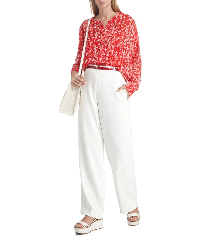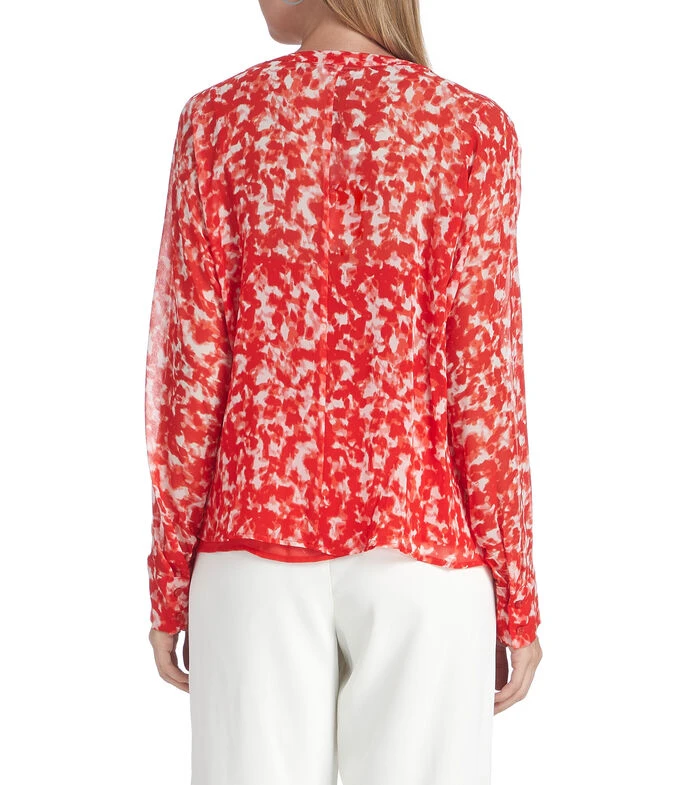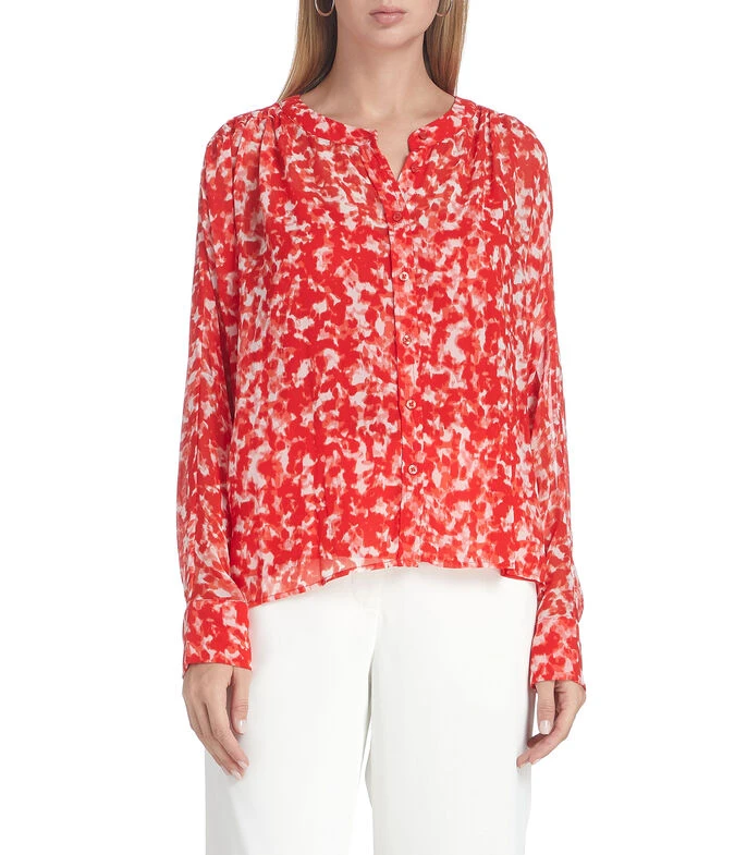Blusa Calvin Klein de corte regular en tejido plano, diseño de fantasía, cuello redondo, manga larga, puño doble y botonadura contraste.