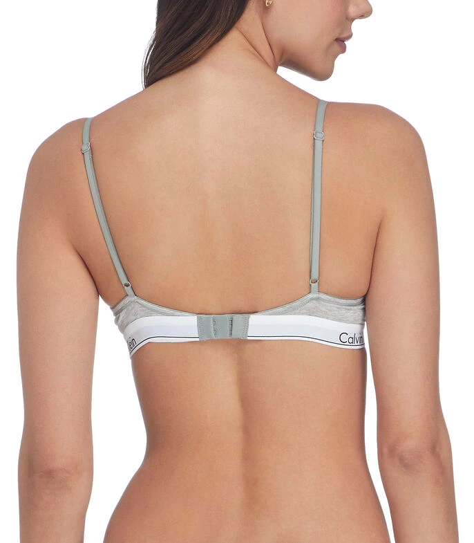 Brasier Calvin Klein en tejido de punto jaspeado, copa suave, tirantes ajustables, elástico inferior con marca a contraste.