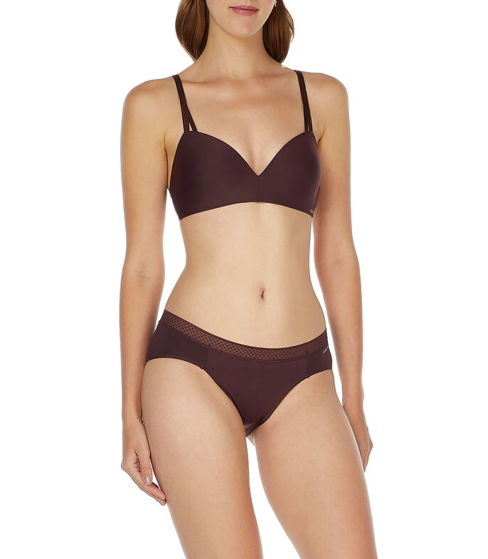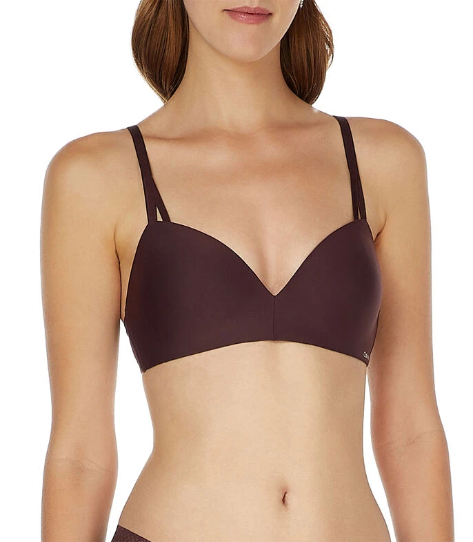 Brasier Calvin Klein en tejido de punto liso con copa suave, sutil logotipo en un costado, tirantes ajustables y broche al reverso.