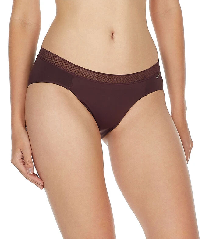 Calzón Calvin Klein en tejido de punto liso con encaje sobre cintura.
