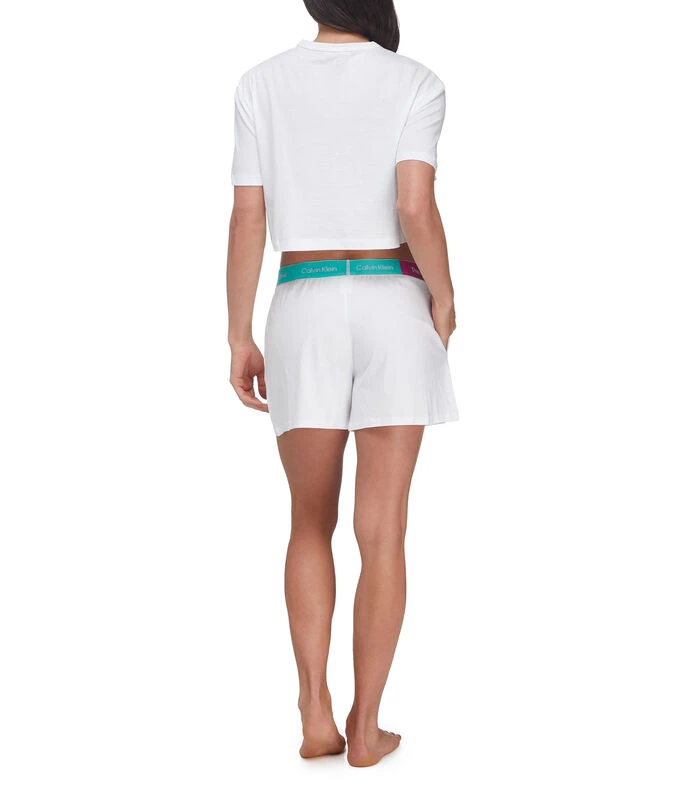 Pijama Calvin Klein de 2 piezas: Playera Crop Top de corte recto en tejido de punto, cuello redondo, manga corta, bordado en pecho a contraste. Short con pretina elástica y bolsillos en costados.