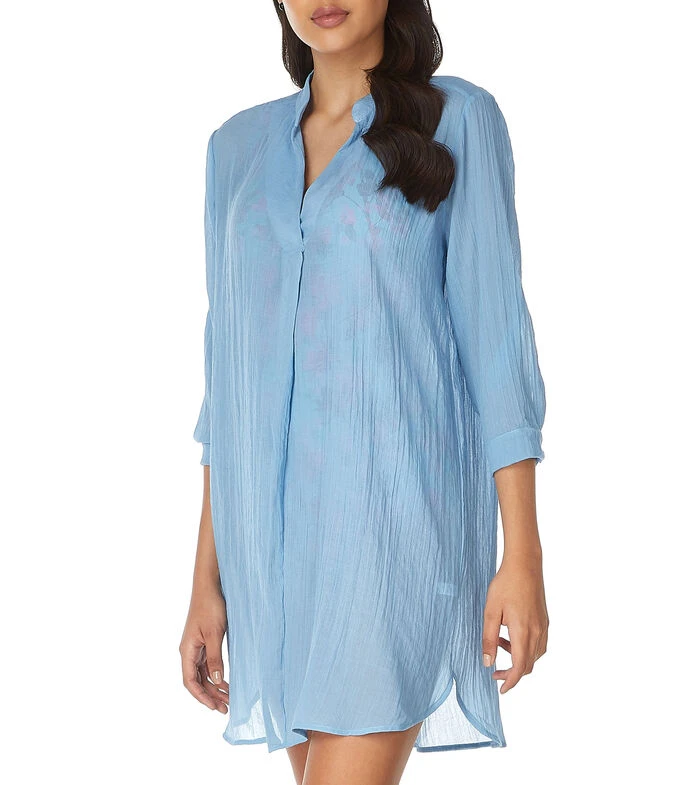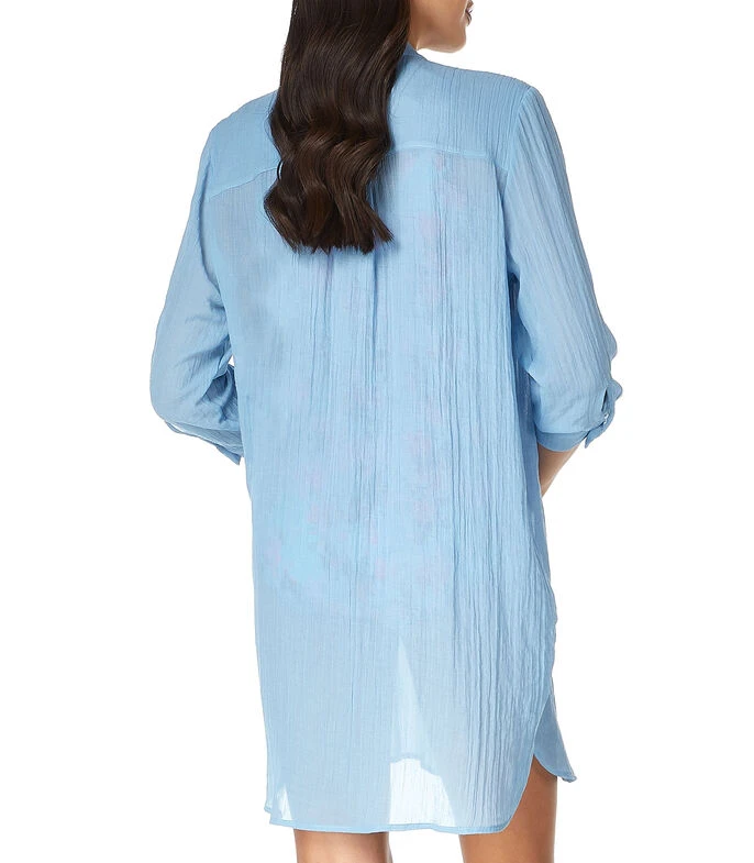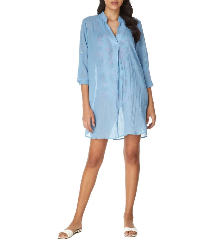 Camisa de playa Barocco larga de corte holgado en tejido de punto con manga 3/4 Mujer.