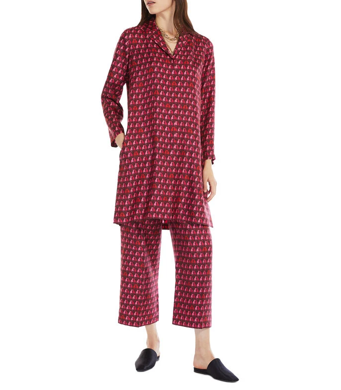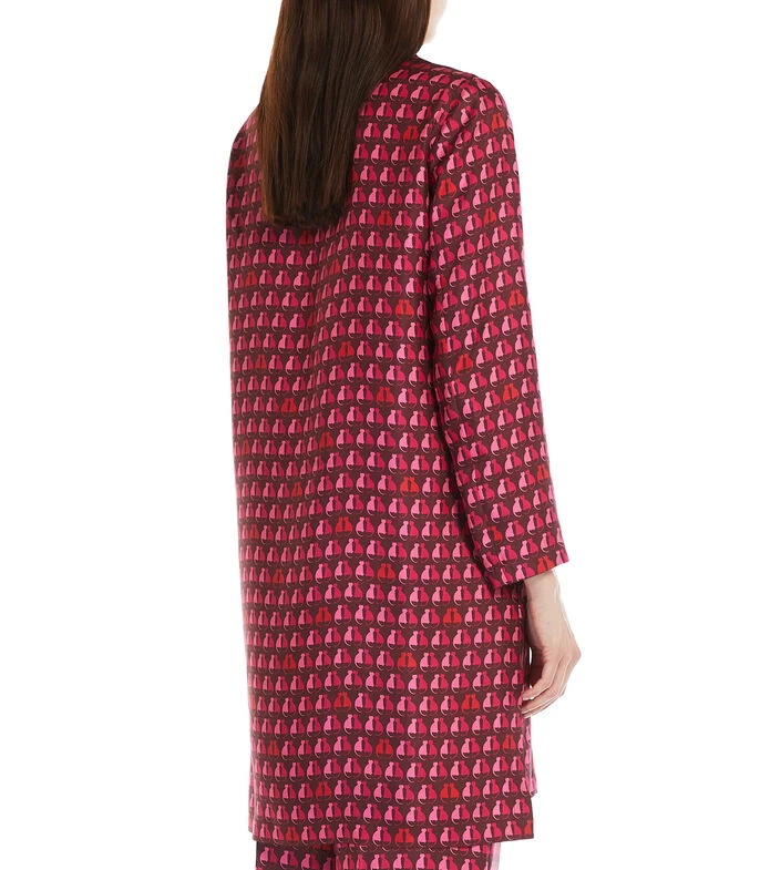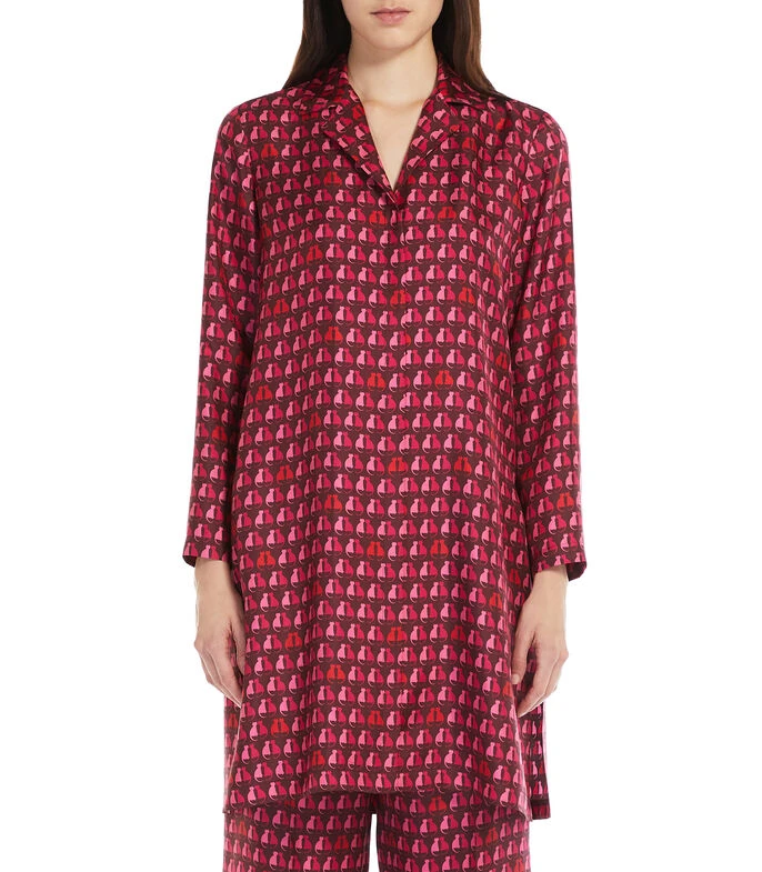 Camisa Pijama MaxMara Taddeo de corte amplio en tejido de punto satinado con estampado a contraste, cuello «V» y manga larga. ¿Lista para dormir? Tu noche será aún más placentera con esta cómoda camisa larga, evitando el corte ceñido para un mejor descanso. Combínalo con el pantalón a juego para lucir fabulosa aún en tu hora de dormir.