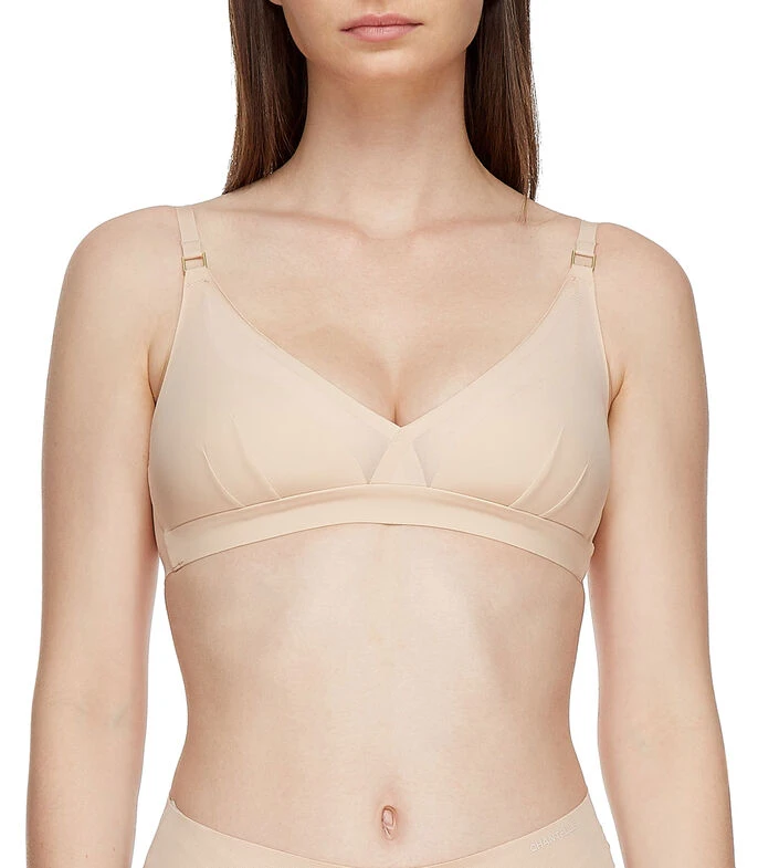 Bralette Chantelle Pure Light en tejido plano, tirantes ajustables y detalles semitransparentes al frente.