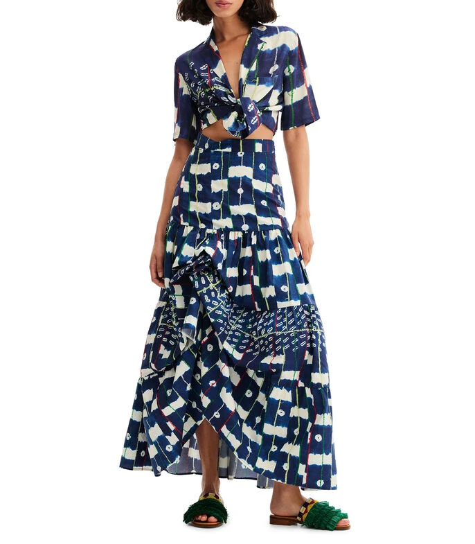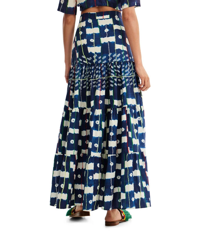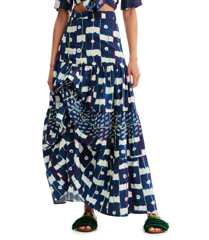 Falda larga Desigual Batik de corte recto en tejido de punto con estampado abstracto, líneas a contraste y detalle de pliegues.