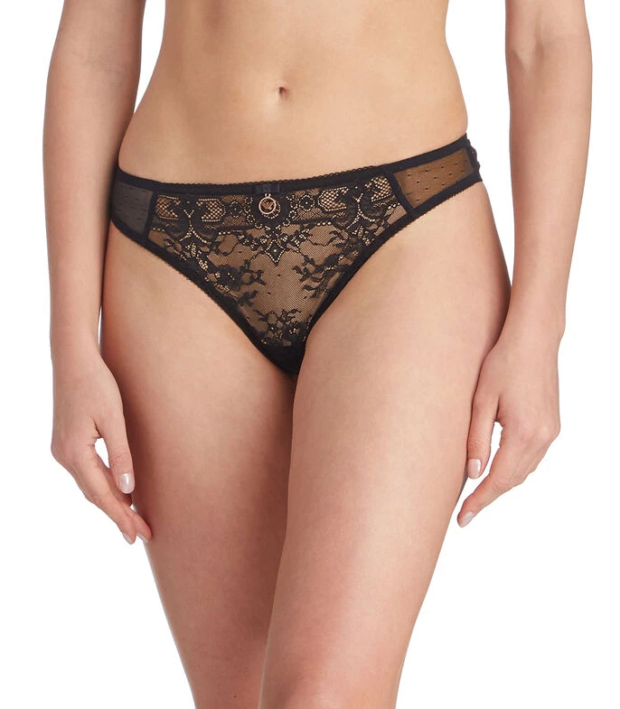 Bikini Emporio Armani en tejido de punto con encaje floral y bordes elásticos. Una prenda elegante con un toque de sensualidad para esas noches de fantasía.