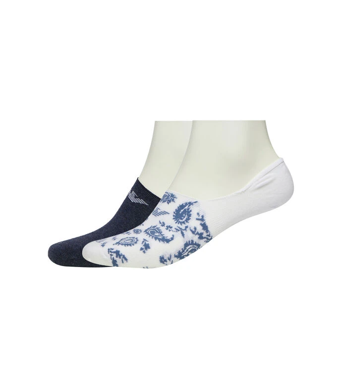 Set Calcetines invisibles Emporio Armani en tejido de punto con detalle decorativo de logo de la marca estampado a contraste y borde superior acanalado: Blanco con estampado y Azul jaspeado.