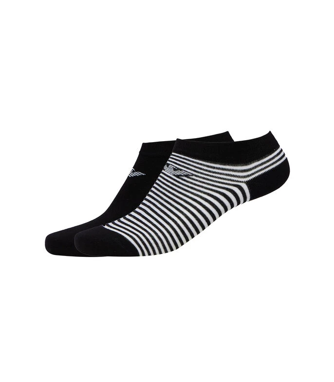 Set Calcetines Emporio Armani en tejido de punto con detalle decorativo de logo de la marca estampado a contraste y detalle de dobles en borde superior: Negro y Negro con líneas.