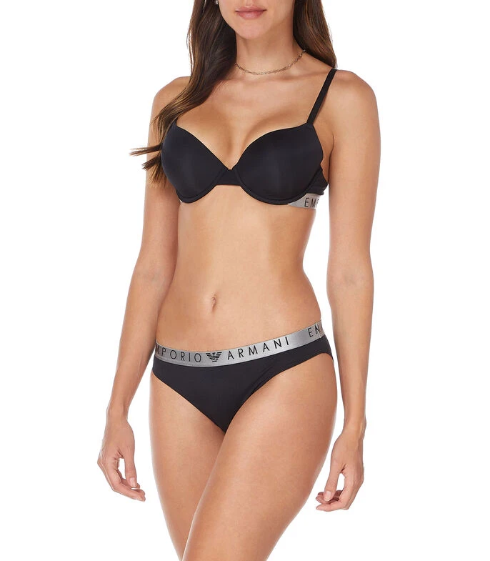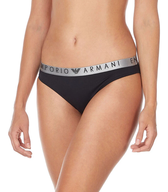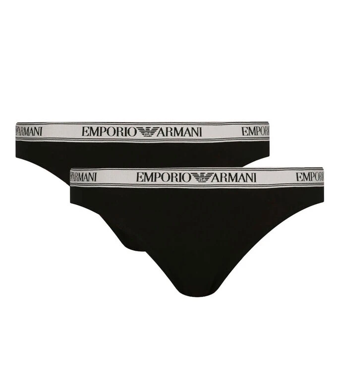 Set Emporio Armani de bikinis en tejido de punto con nombre de la marca bordado a contraste en pretina elástica.