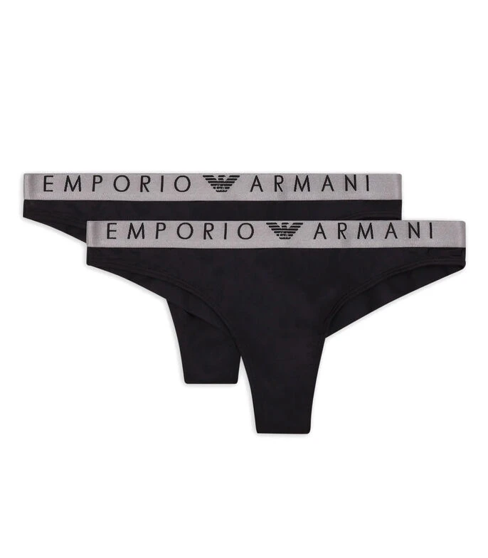 Set Emporio Armani de tangas en tejido de punto con nombre de la marca bordado en pretina elástica.