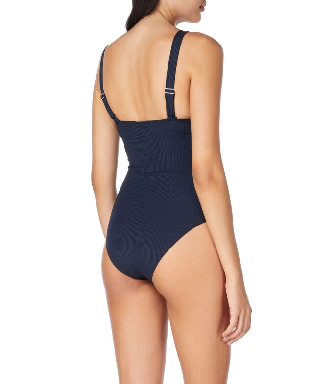 Traje de baño Emporio Armani en tejido de punto con acabado canalé, copa suave en escote y tirantes ajustables.