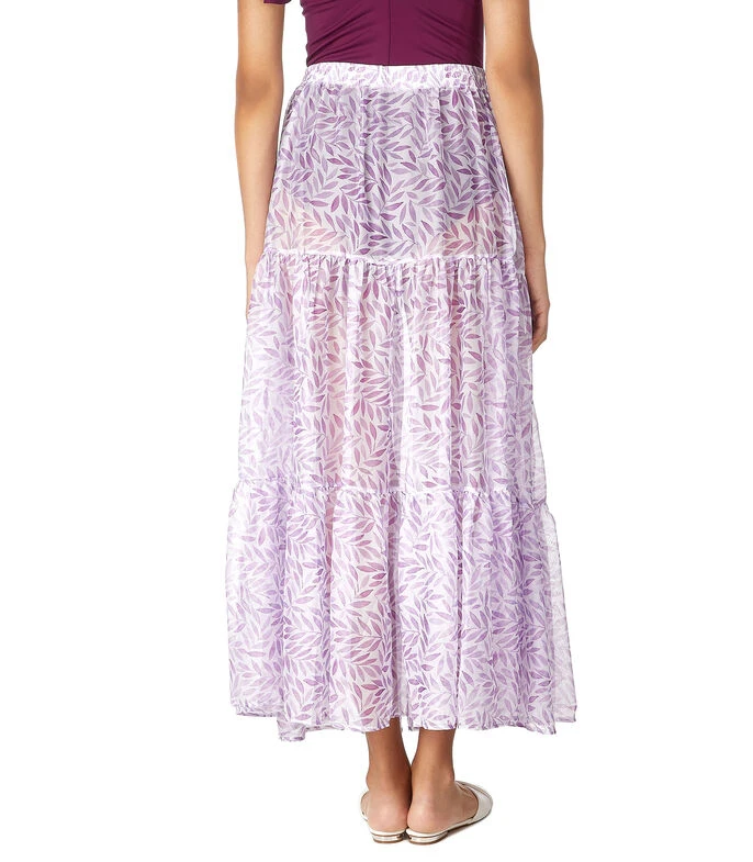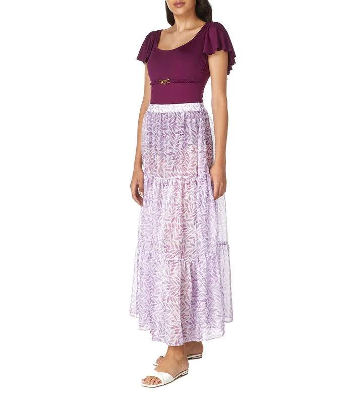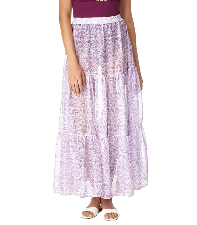 Falda de playa Barocco maxi de corte recto en tejido de punto semi transparente con hojas y elástico en cintura.