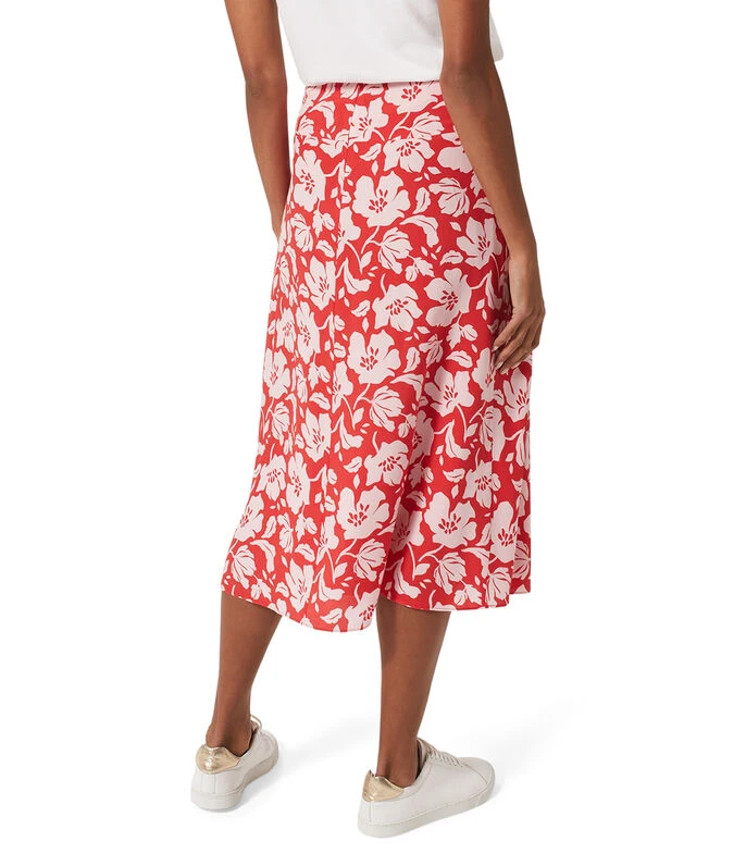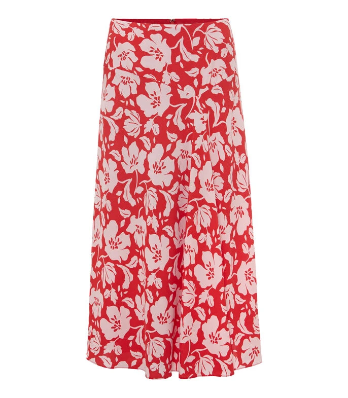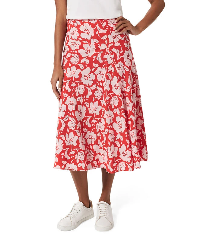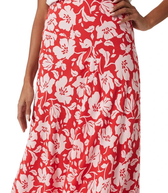 Falda larga Hobbs Angie, de corte A en tejido de punto con flores multicolor y cierre posterior.