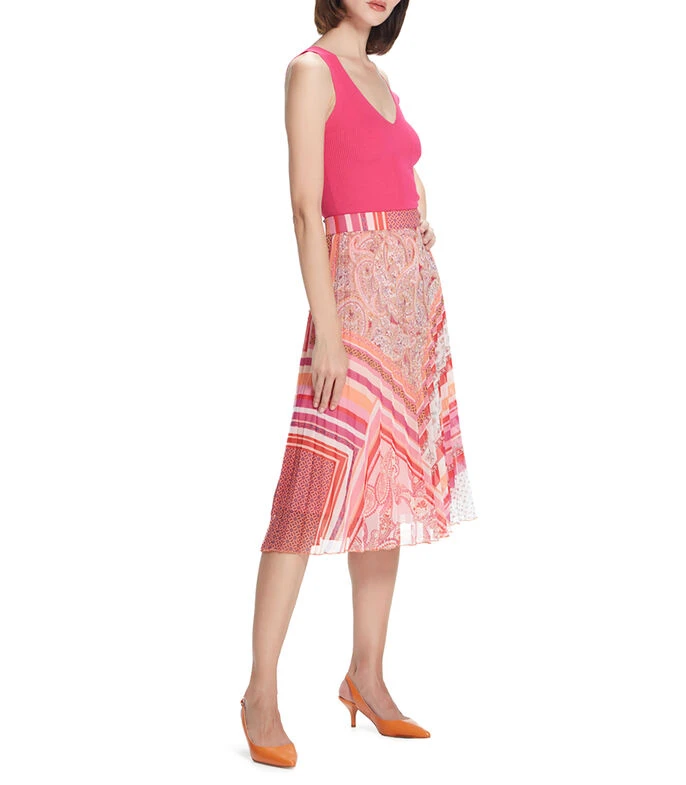 Falda midi Julio corte cropped. Cierre oculto de cremallera. Chifón plisado con estampado de patchwork. Forro interior.