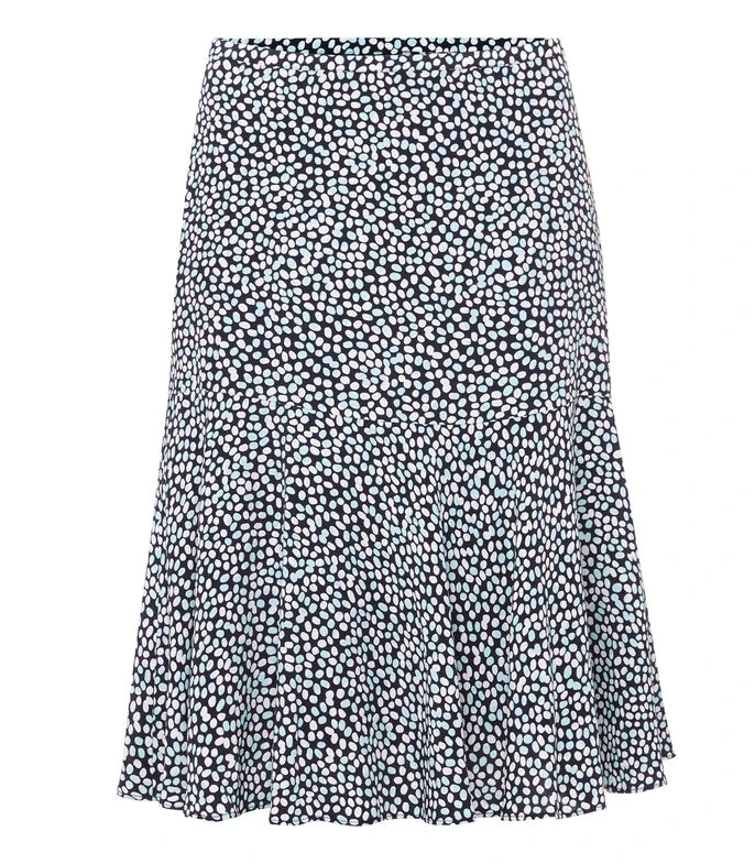 Falda Hobbs de corte regular en tejido de punto, diseño decorativo de puntos y detalle de olanes en borde inferior de la prenda.