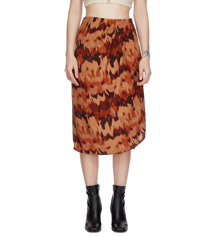 Falda midi Epsilon de corte recto en tejido de punto, diseño tipo animal print y pretina elástica.