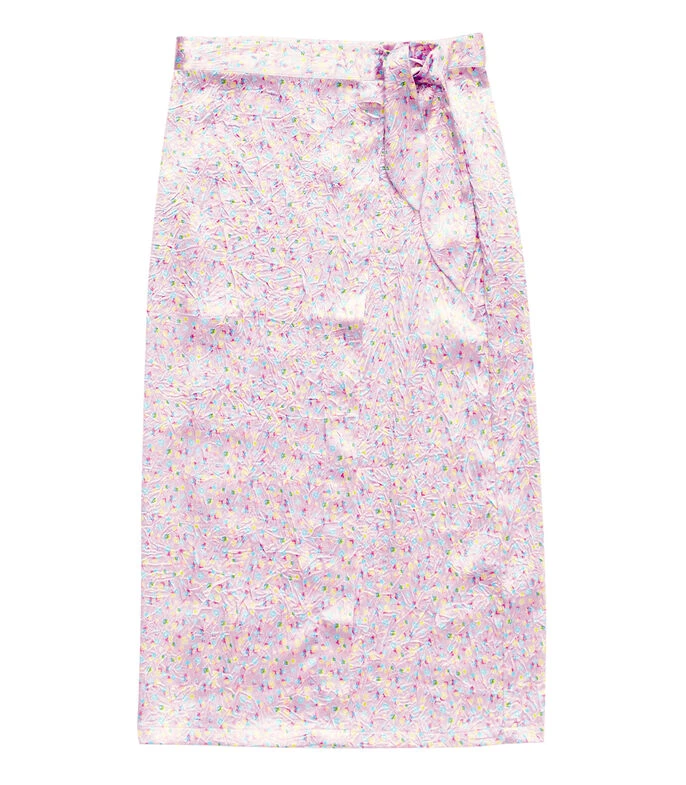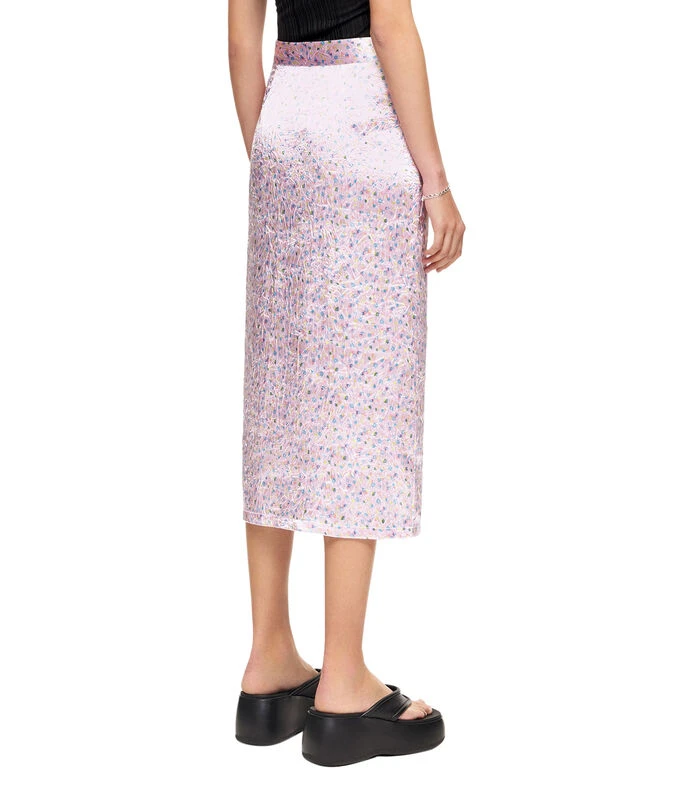 Falda midi Bimba y Lola de corte recto en tejido de punto con estampado abstracto alusivo al modelo y cierre de lazo en pretina.