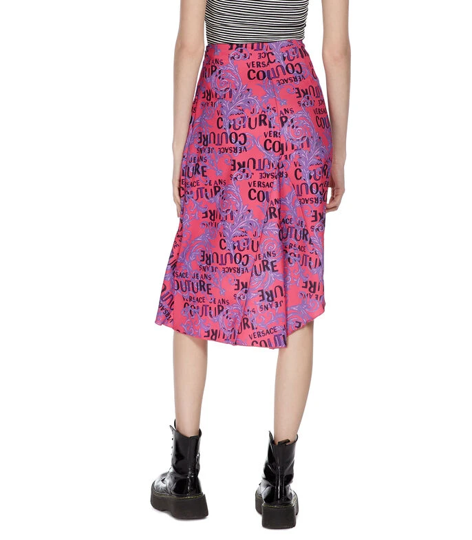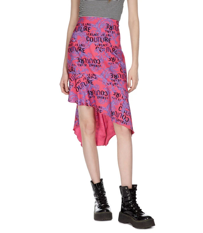 Falda Versace Jeans Couture midi de corte regular en tejido de punto con diseño monogram de la marca, cremallera al costado y borde inferior asimétrico.