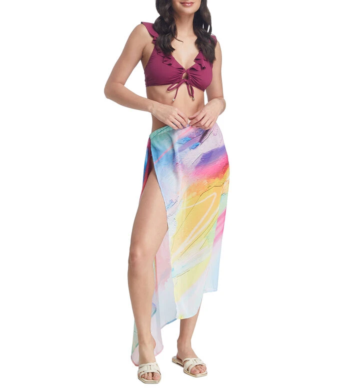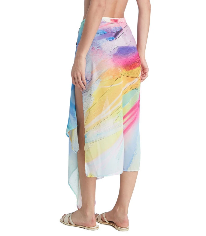 Falda para playa Gottex en tejido de punto multicolor, pretina elástica y botonadura a tono.