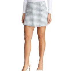 Falda short Catamaran corta de corte recto en tejido de punto, cintura con cierre de cremallera en la parte trasera y diseño de pata de gallo a contraste.