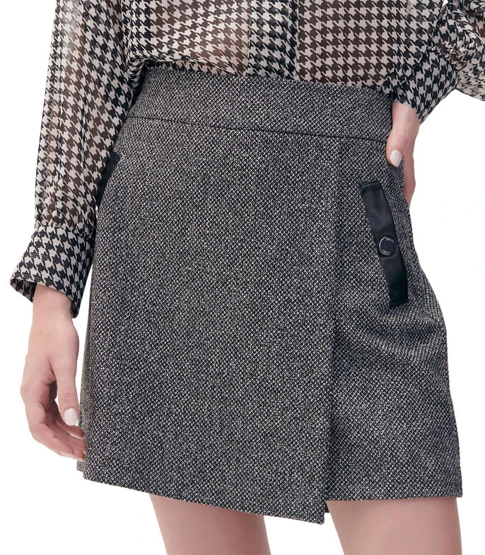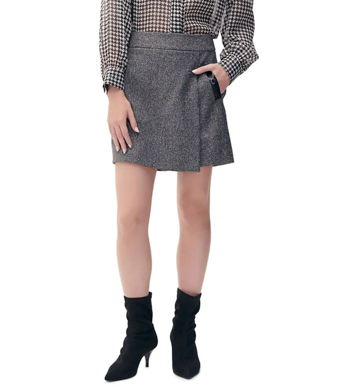 La falda short de tejido tweed con detalles de vinipiel es una opción atemporal. Combínala con una blusa elegante y tacones para un look sofisticado. También puedes usarla con una camiseta adicionando tenis para un estilo más cómodo. Ideal para salir con tus amigas.