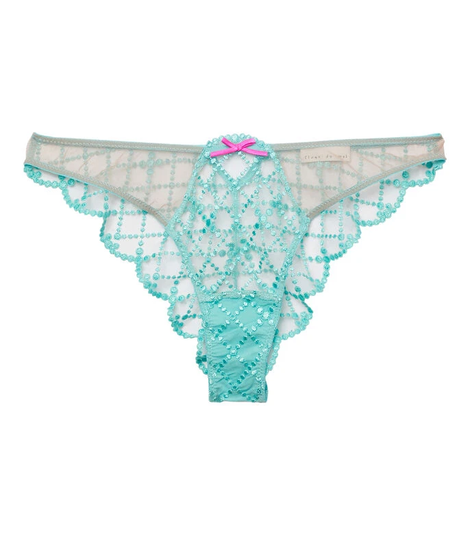 Bikini Fleur du Mal Dotty Grid en tejido de punto con encaje de cuadros, pretina elástica y moño decorativo al frente.