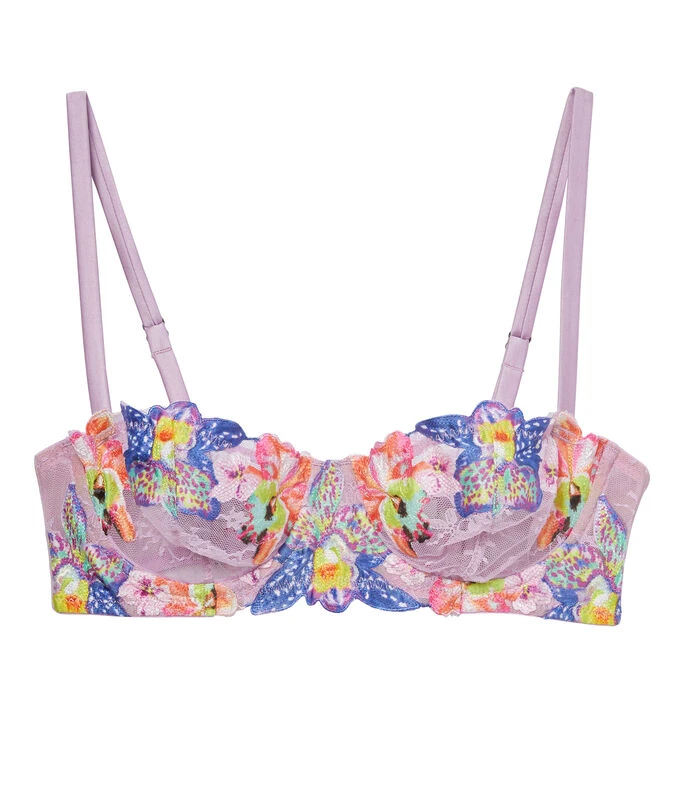 Brasier con varilla Fleur du Mal Orchid en tejido de punto, encaje, flores multicolor, tirantes delgados ajustables y broche en espalda.