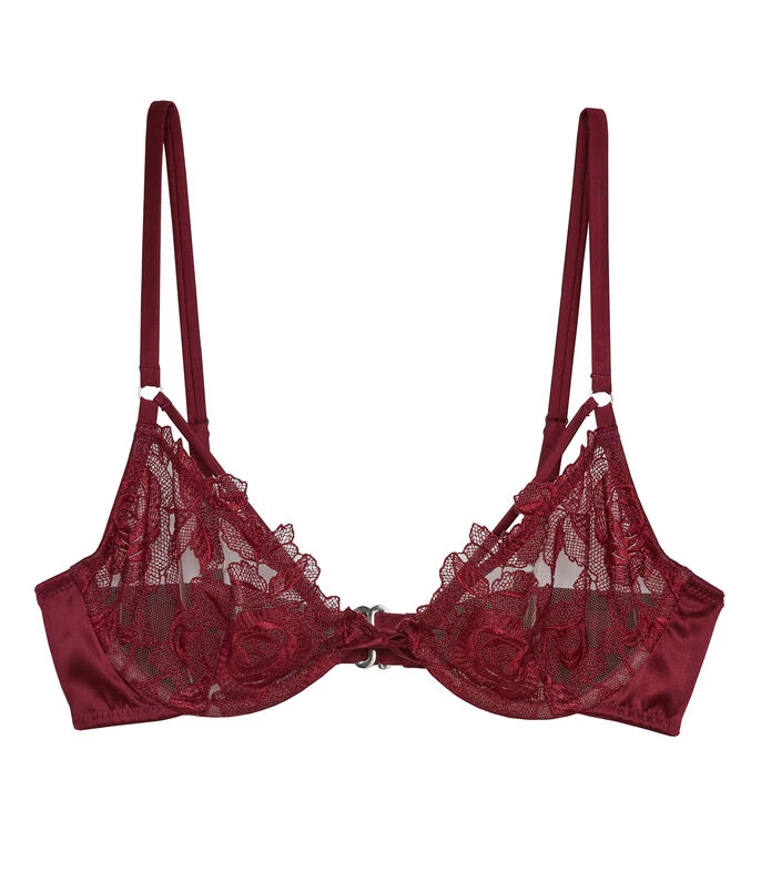 Brasier con varilla Fleur du Mal en tejido de punto, encaje floral, anillas de acero, detalle de ornamento en escote, tirantes finos ajustables y broche en espalda.