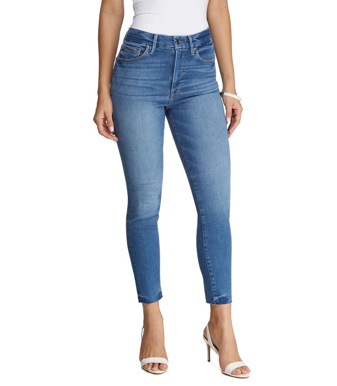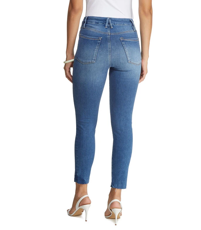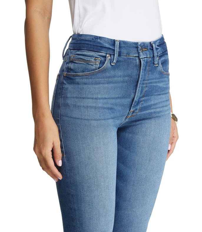 Jeans Good American de corte recto, sutil diseño deslavado, pespuntes a contraste, remaches metálicos, bolsillos a los costados y detalle en borde inferior.