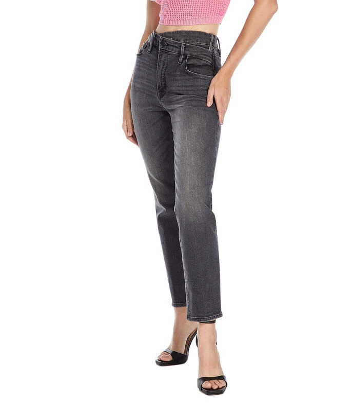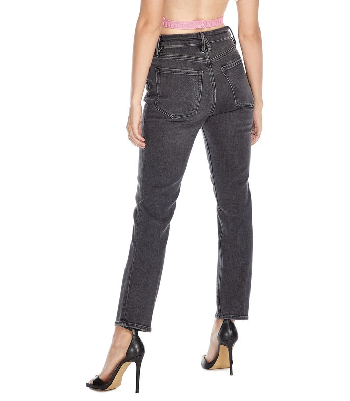 Jeans Good American de corte Skinny en sutil deslavado con bragueta de cierre y bolsillos.