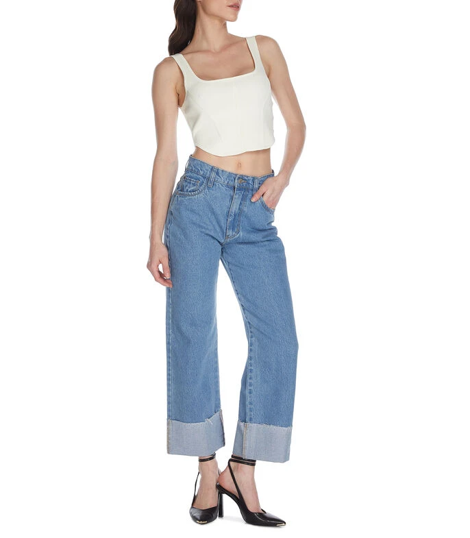 Jeans Epsilon de corte amplio en acabado teñido con detalle deslavado, pespuntes a contraste, bragueta de cierre y bolsillos.