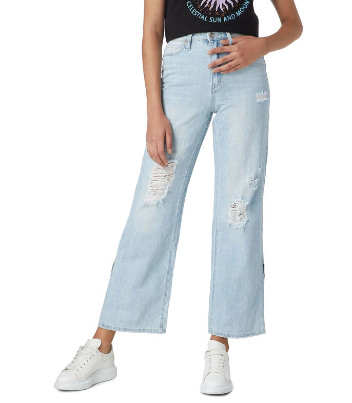 Jeans Catamaran de corte recto en acabado deslavado, detalles desgastados con abertura, bragueta de cierre y bolsillos.