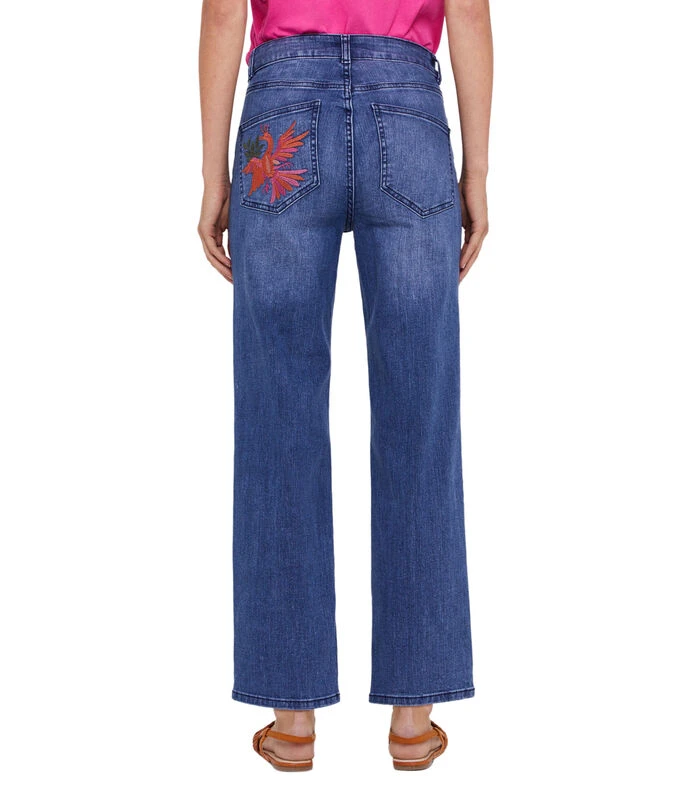 Jeans Cortefiel de corte Straight, botonadura metálica, bragueta de cierre, pespuntes a tono, deslavado ligero y bordado posterior a contraste.