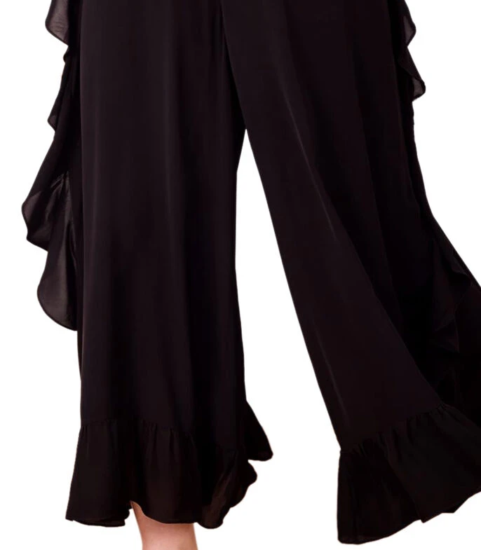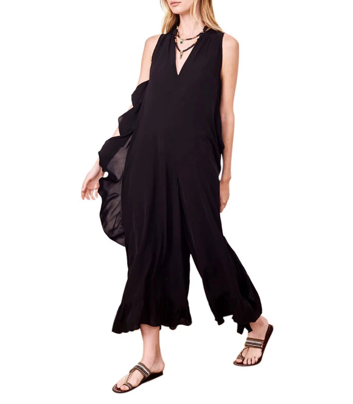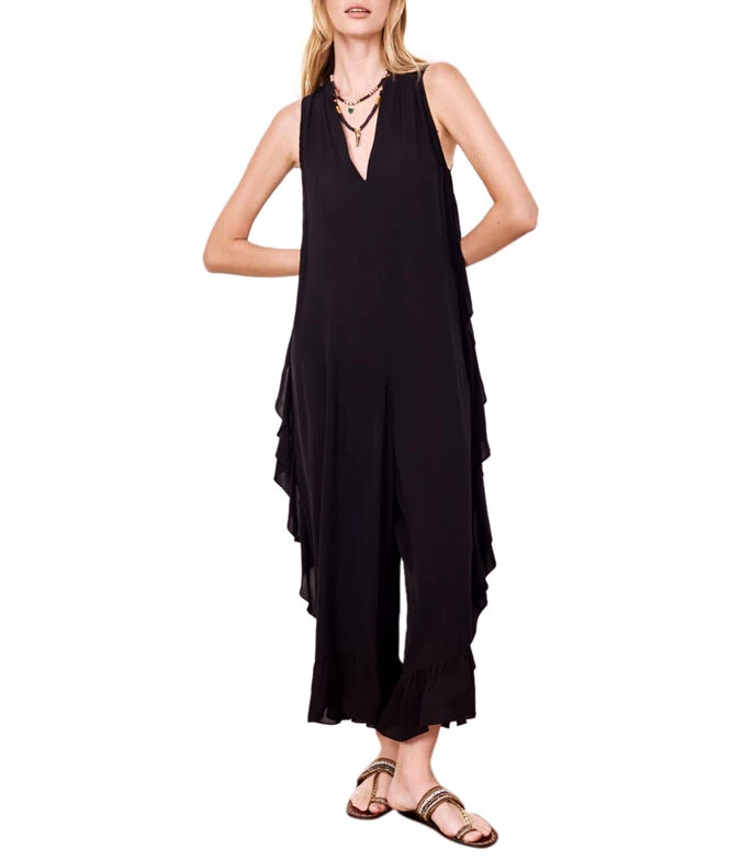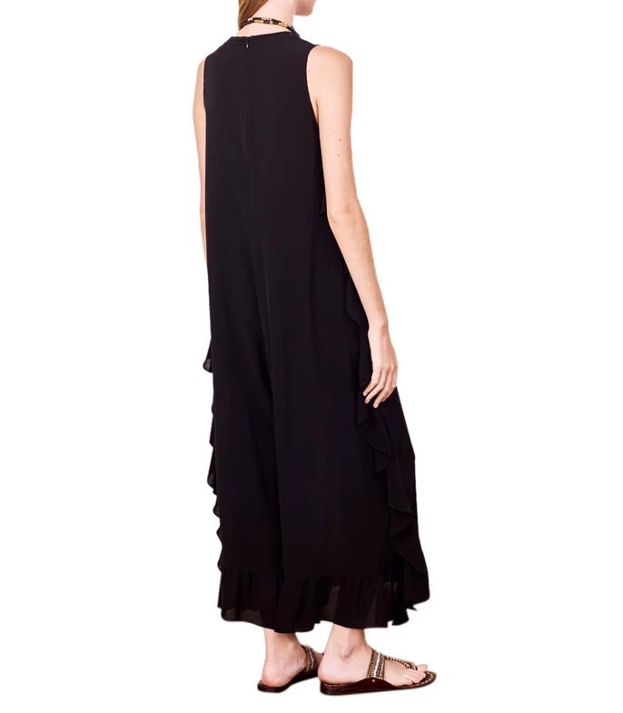 Jumpsuit Rapsodia de corte amplio en tejido de punto, cuello «V», sin mangas y aletilla con transparencia en costados.