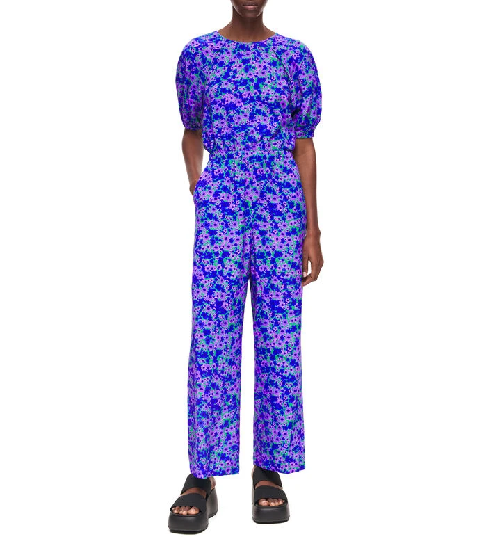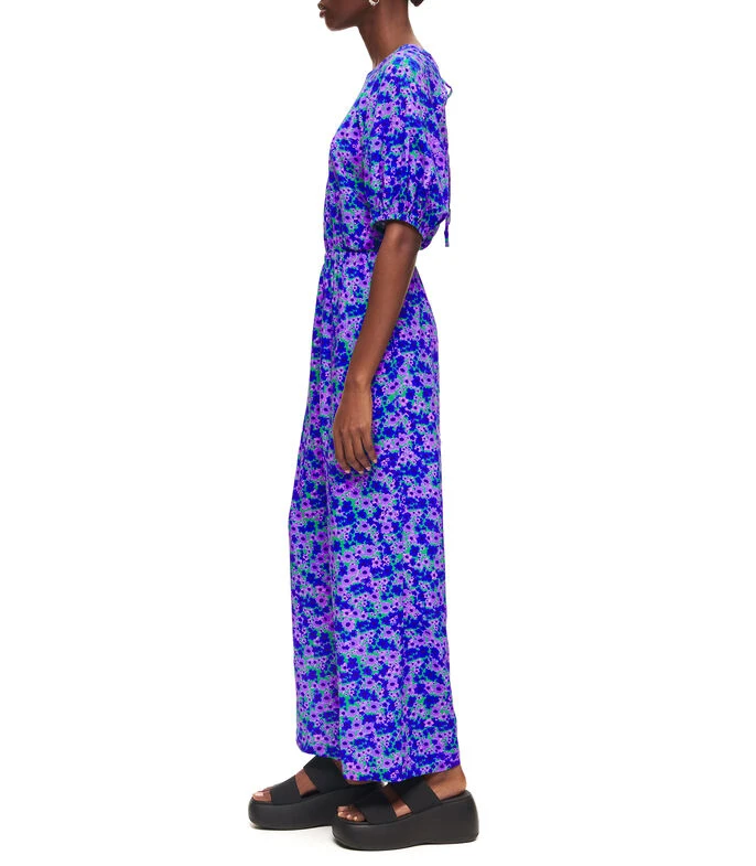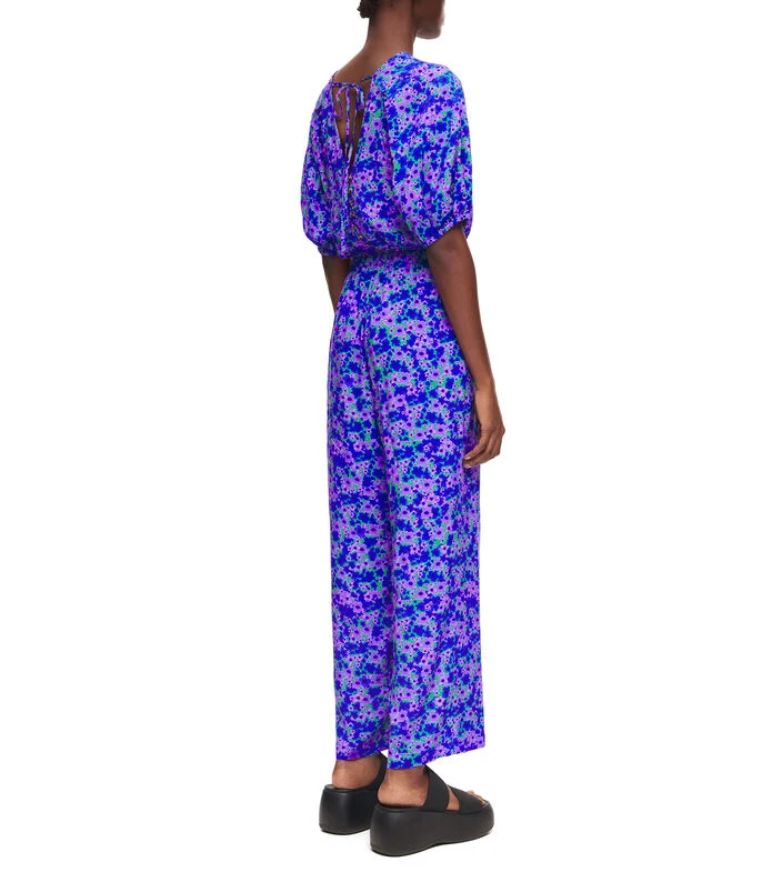 Jumpsuit Bimba y Lola de corte recto en tejido plano con diseño de flores, escote en espalda, cintas ajustables, botonadura en parte posterior a contraste, elástico en manga y pretina.