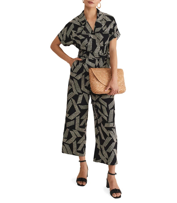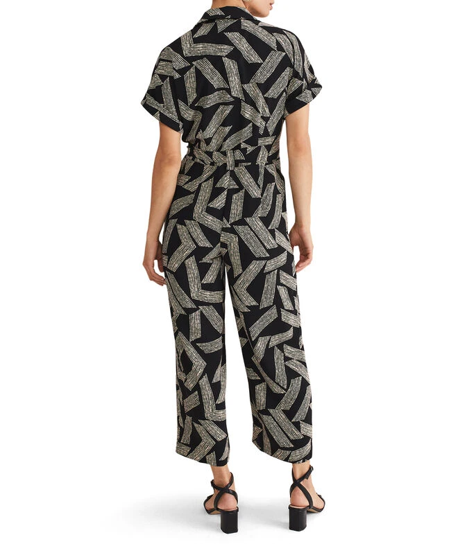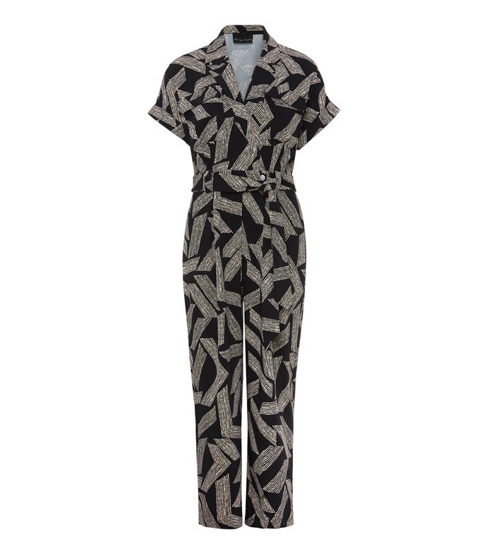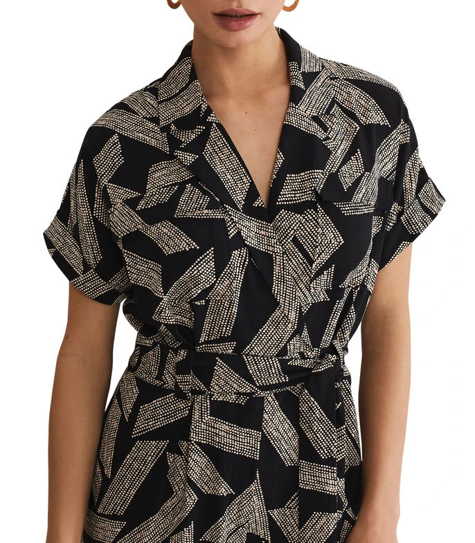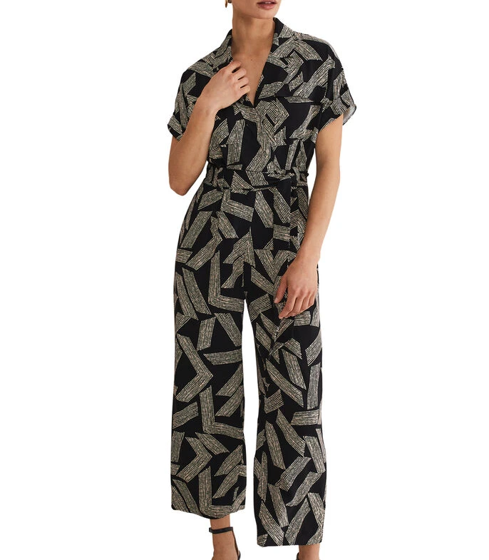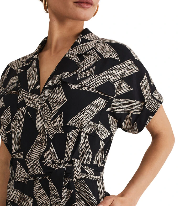 Jumpsuit Phase Eight Constance de corte recto en tejido de punto con estampado de puntos, cuello camisero, bolsillo tipo parche, lazo de amarre en cintura y botón a contraste.