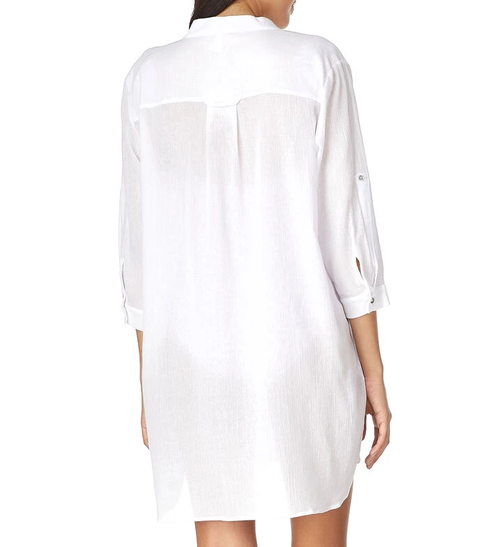Kaftan de playa Barocco en tejido de punto liso con pinza en la espalda y manga 3/4.