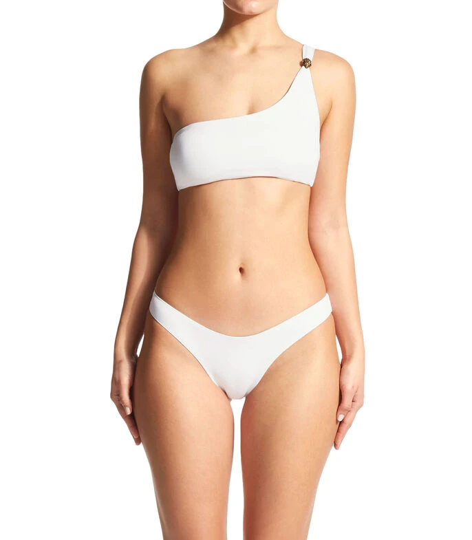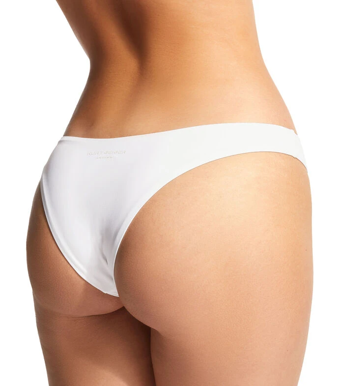 Bikini bottom Kurt Geiger Kensington en tejido plano con diseño liso y nombre de marca en posterior. Los Kensington Briefs llegan en un blanco brillante con un corte clásico.