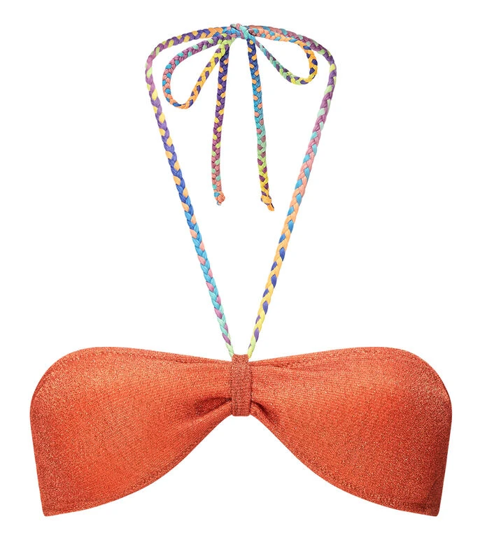 Bikini Top Kurt Geiger Rainbow en tejido de punto, texturizado, correas trenzadas con un degradado de arcoíris y se pueden ajustar. Perfecto para lucir en la playa, en la piscina o durante las vacaciones.