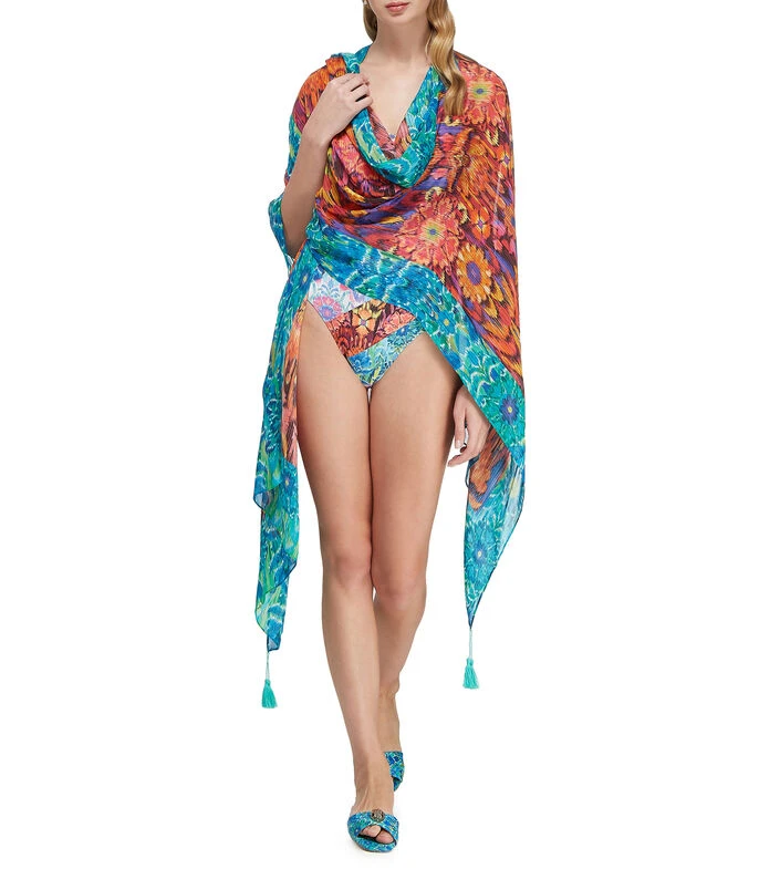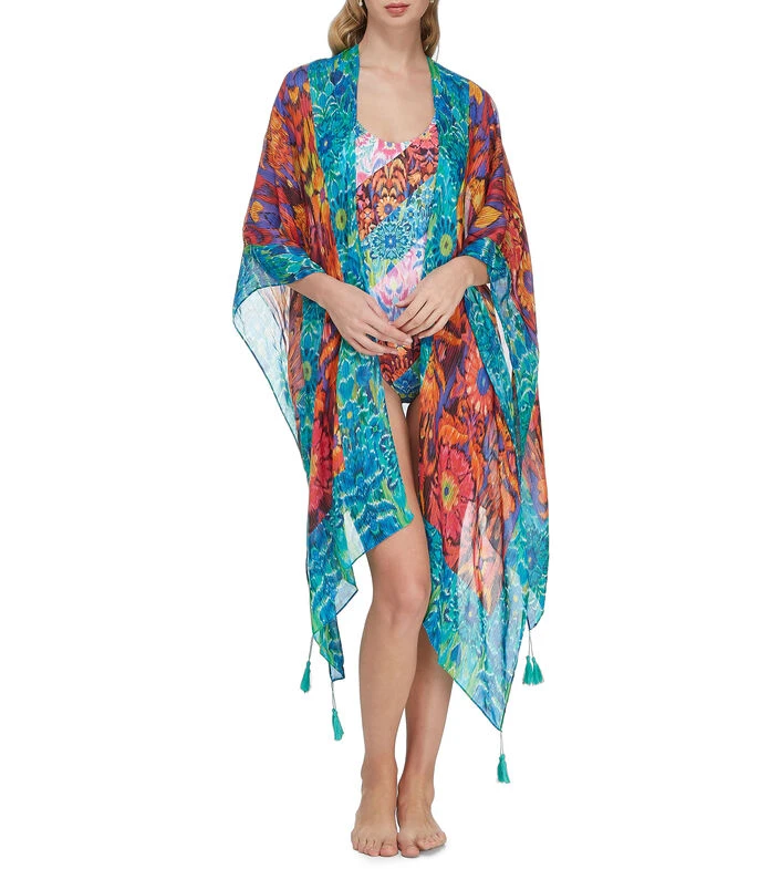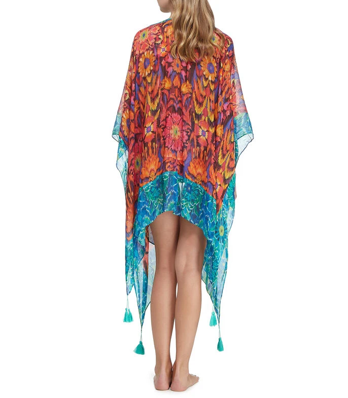 Kaftan para playa Kurt Geiger en tejido de punto con diseño de flores en mosaico. Añade esta hermosa prenda a tus vacaciones.