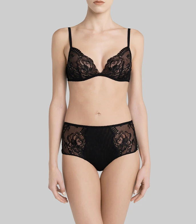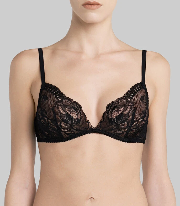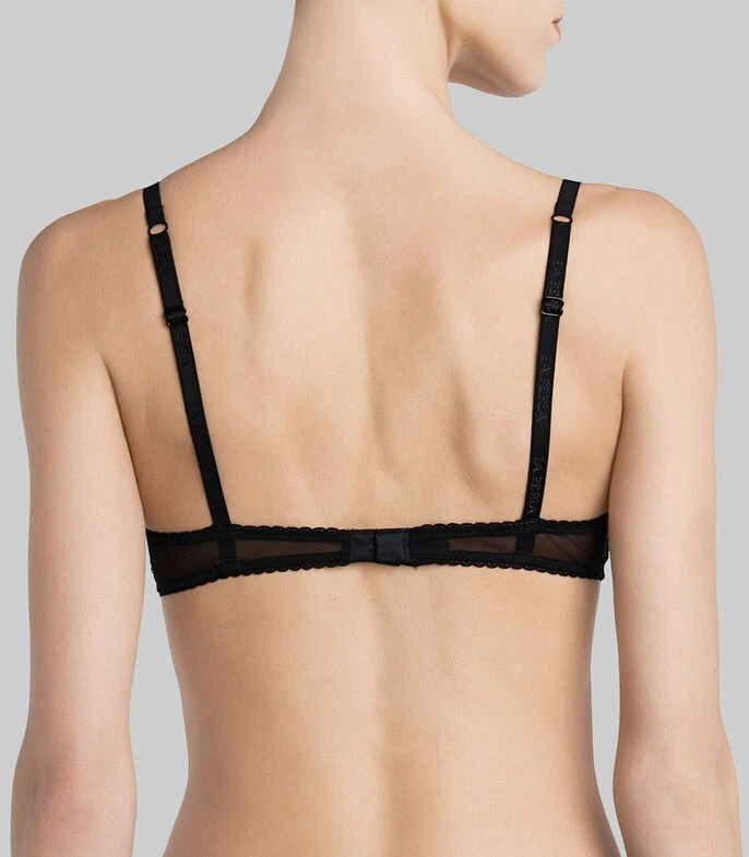 Bralette La Perla en tejido de punto con un hermoso diseño de encaje, bordes inferiores ondulares, tirantes finos ajustables y broche en espalda.