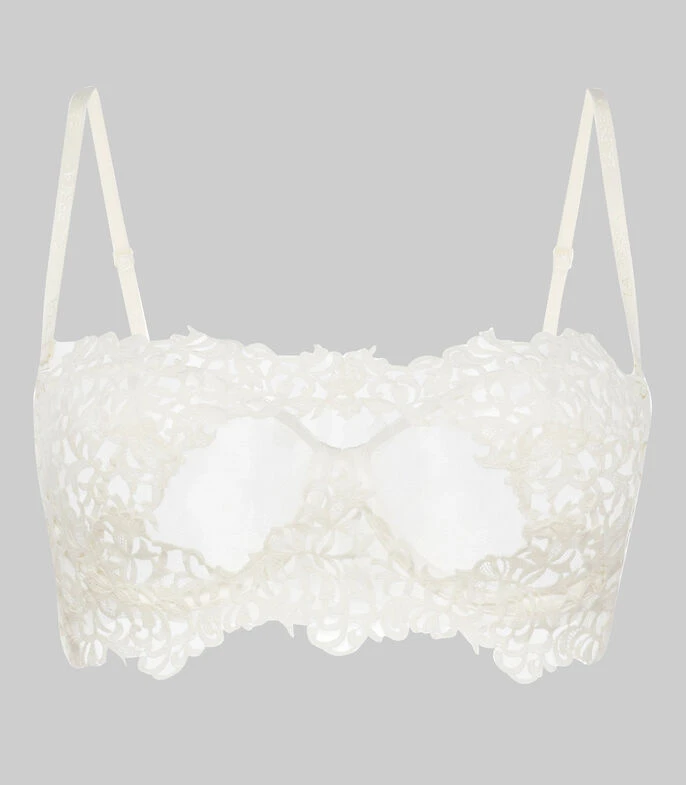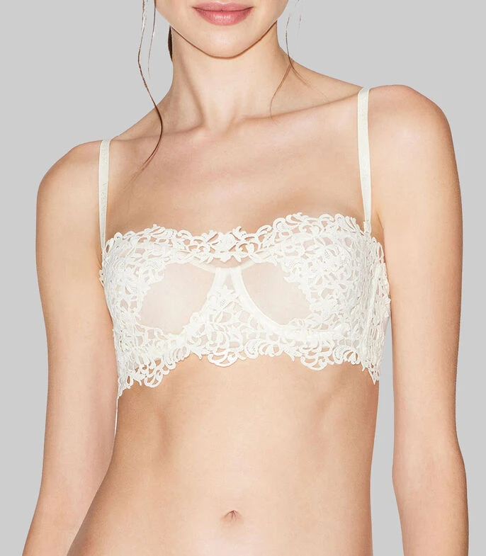 Brasier strapless La Perla en tejido de punto con encaje a tono y tirantes desmontables.