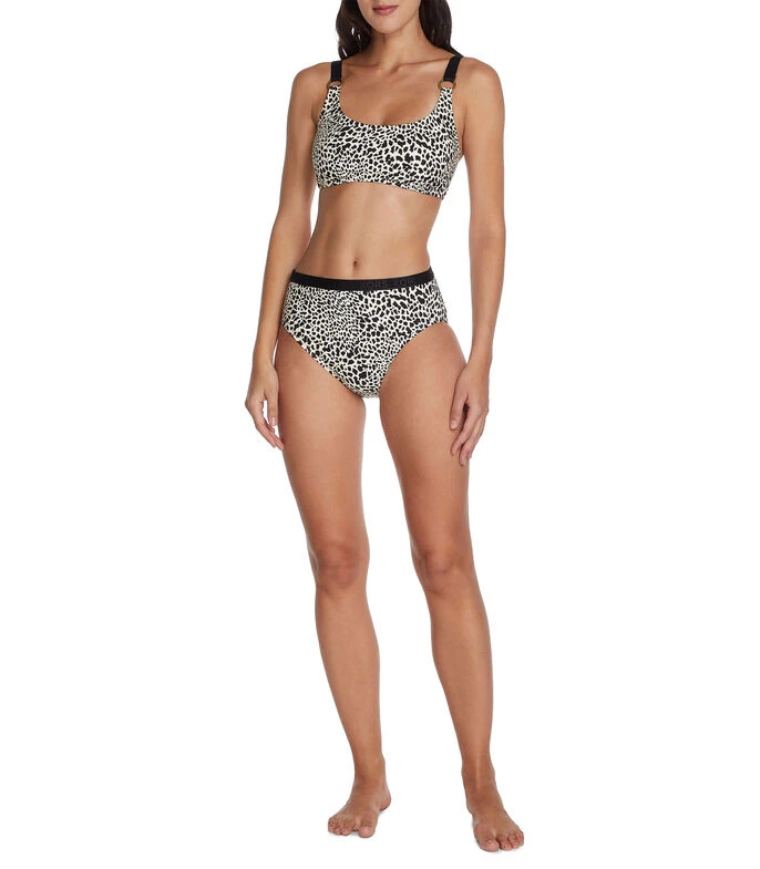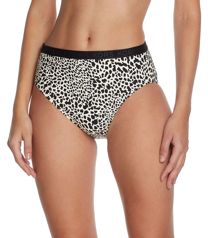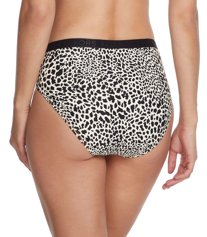 Bikini bottom Michael Kors en tejido de punto, diseño de animal print y elástico en cintura con logotipo en repetición.