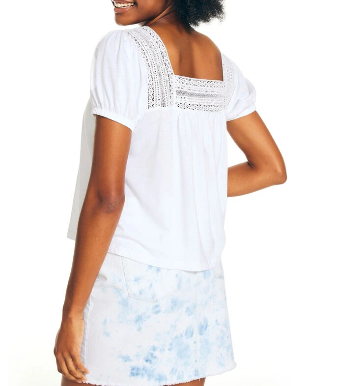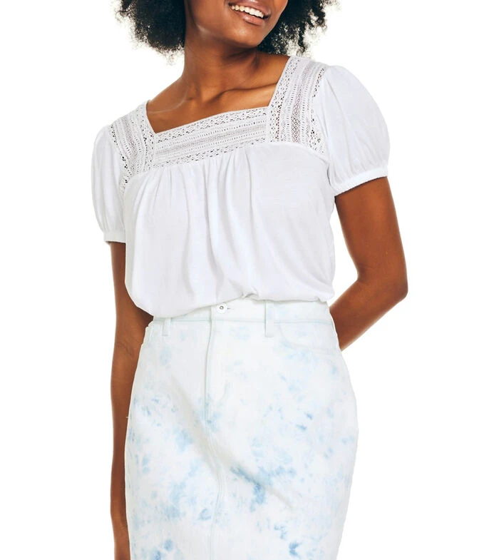 Blusa Nautica de corte recto en tejido de punto con encajes tonales sobre escote y espalda. El complemento ideal para ese estilo que quieres proyectar.