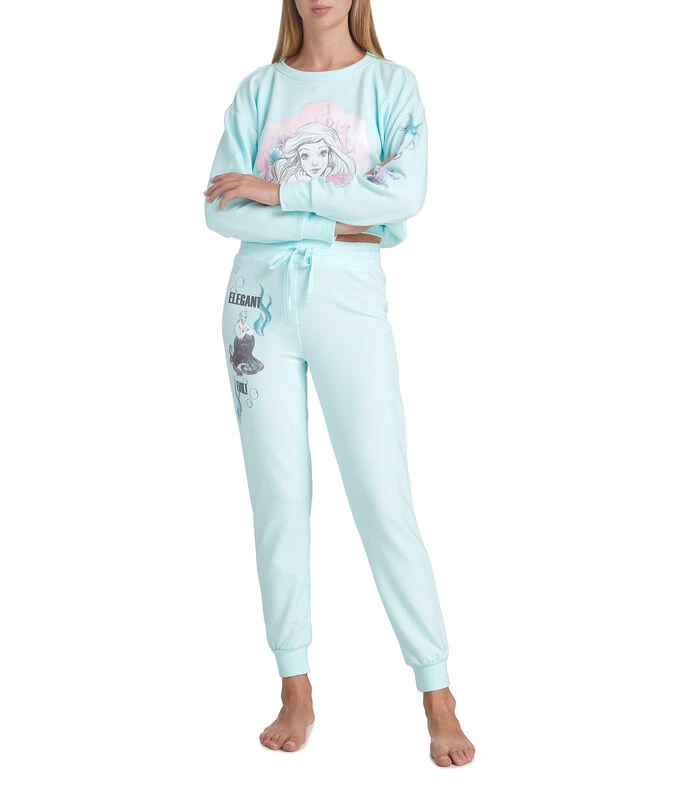 Pantalón pijama UNWIND by Epsilon de corte jogger en tejido de punto, estampado alusivo a la sirenita, pretina elástica con jareta y bolsillos laterales.